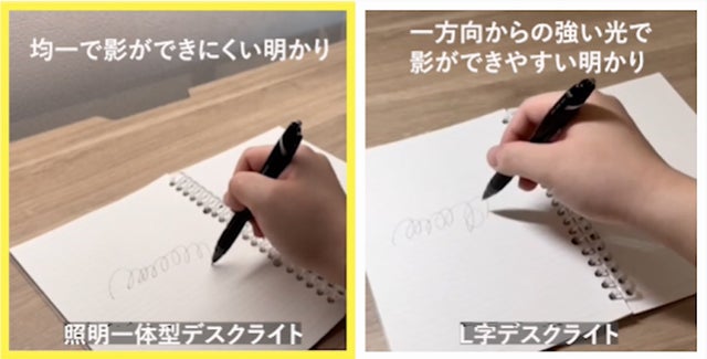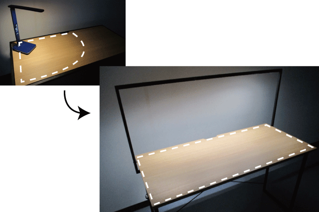 メリット2:机全体を均一に明るく照らせるおかげで明暗差がなく目にやさしい!