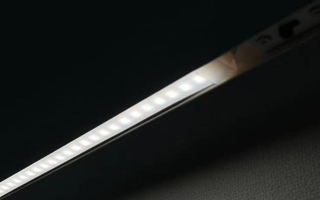 照明スタンドの金属フレームの上部全面にLEDを内蔵することにより、照明スタンドだけではカバーしきれない机の隅々まで明るく照らします。机全体を照らせるおかげで明暗差をなくし、視環境が良くなることで視覚ストレスを低減させます。また、壁際にデスクを配置した際は壁から反射される関接光にて、より明るく照らします。