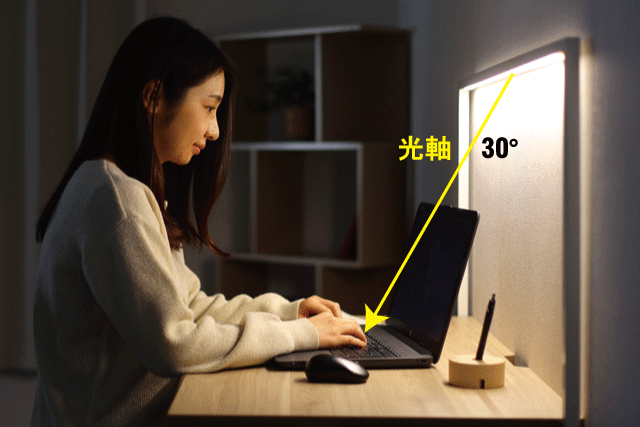 - 卓上の一部だけではなく机上面を全て照らせることで明暗差による視覚ストレスを低減。目にやさしい!