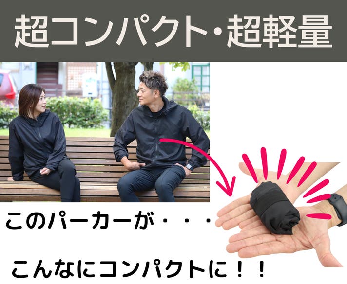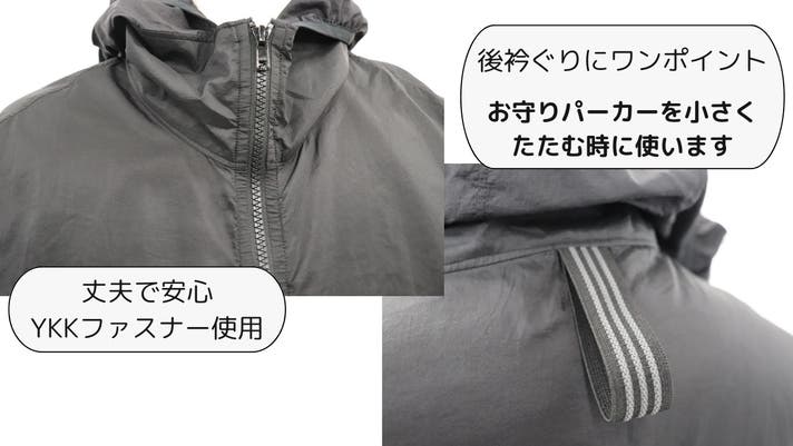- 超コンパクト、超軽量。まさに 【 お守り 】感覚で持ち歩けるアクティブパーカー!