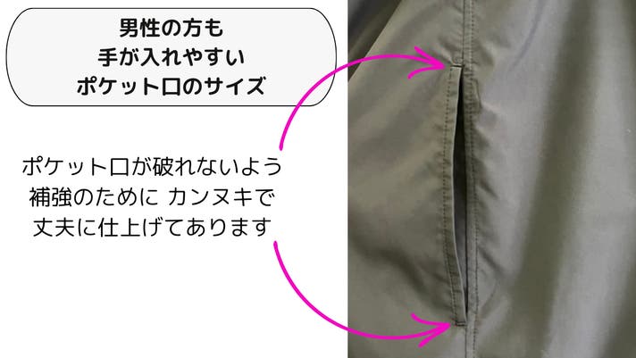 ・撥水加工は永久的なものではなく、着用や洗濯を繰り返すことにより効果が低下します。