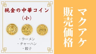 ・純金のコイン(ラーメン、チャーハン、餃子)から1点お選びください)