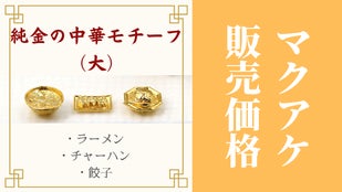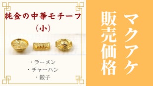 ・中華モチーフ3点は純金製です。ラーメン(約0.7g)、チャーハン(約0.7g)、餃子(約0.3g)が付きます。*餃子のみ約0.3gのものになります。