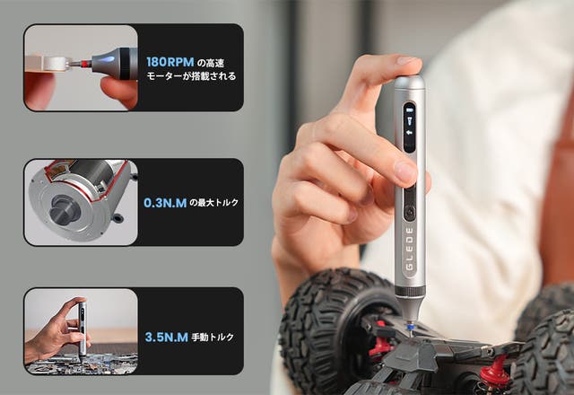 無負荷の状況で1分間あたり180回回転できます。0.3N.Mの最大電気トルクで、電子デバイスなどの修理ニーズを満たします。素手より作業時間を大幅に短縮!