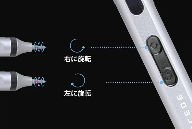 右に回転すると、ネジを「緩める」。左に回転すると、ネジを「締める」。中間は固定パータンです。