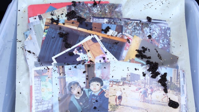 日頃から貴重品や残しておきたい品を「思い出キーパー」に入れて保管し、万一の時には家に置いたまま避難しても土砂や水から守り、後に見つけたときに中身は元のままの状態です。