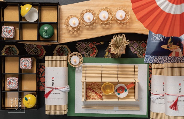 これらすべてを可能にする粋なテーブルコーディネートセットを作りたい。私は空間デザイナーKUMIKOとディスカッションを重ね、2人の知恵と経験から「和モダンテーブルコーディネートセット」を完成させました。