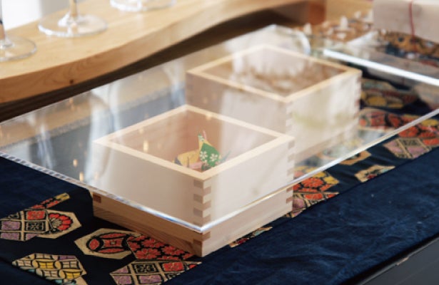 ②クリアプレート ロング 長さ90cm×巾20cm×厚さ5mm 重さ 0.6kg 一合升×2個 素材 アクリル製 ・木製 盛り付けがしやすく、食材が映えます。※電子レンジ・食器洗浄器使用可