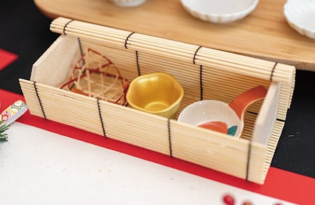 手作りのテーブルランナーやミニ和傘、小鉢、竹細工などの和小物を装飾しテーブルを上品に演出します。お手元に届いたら並べるだけで上質なおもてなしが完成します。