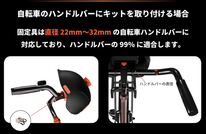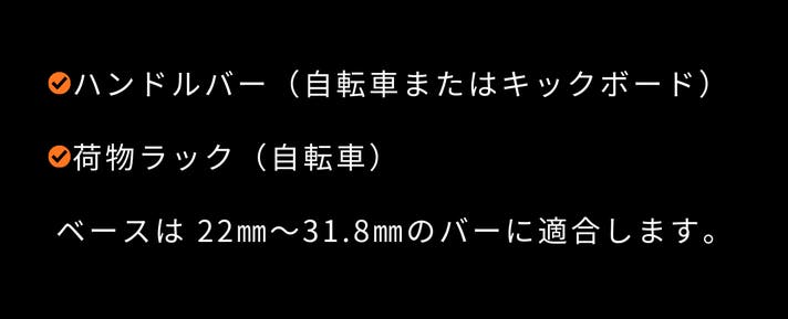 ※ マウントはお好きなタイプ(自転車ハンドル用、荷台用、キックボード用)をお選びいただけます。