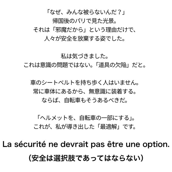 - 【シートベルトの発想を自転車へ】「常にそこにあるから、使う」持ち歩きをなくす最適解。