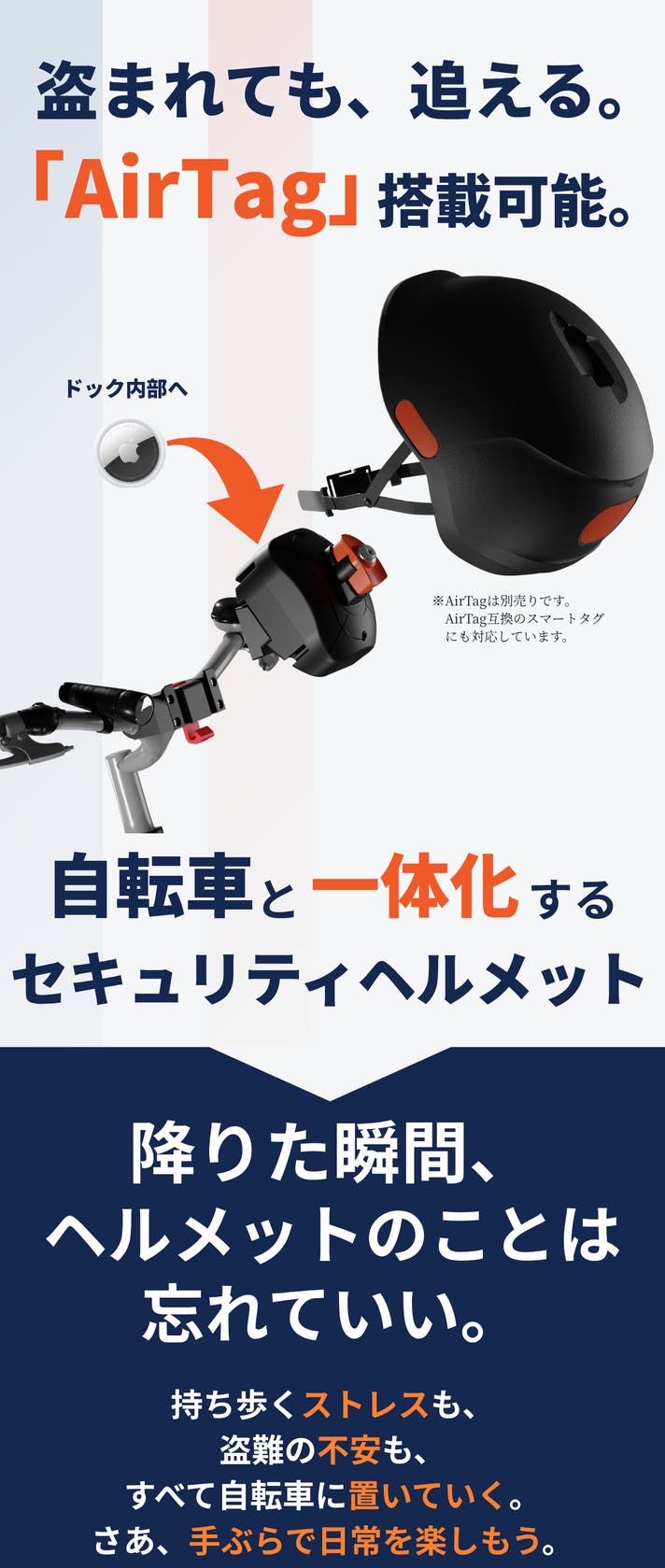 - 【パリ発明展金賞】物理キー+AirTag対応。自転車と一体化するセキュリティヘルメット。