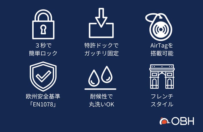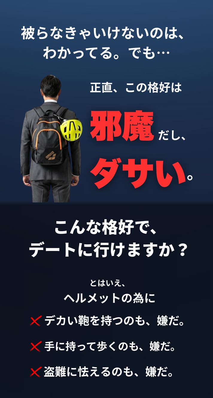 - 【ヘルメットは持ち歩かない】持ち歩く「不便」と「ダサい姿」を解消。3秒ロックで手ぶらの新習慣。