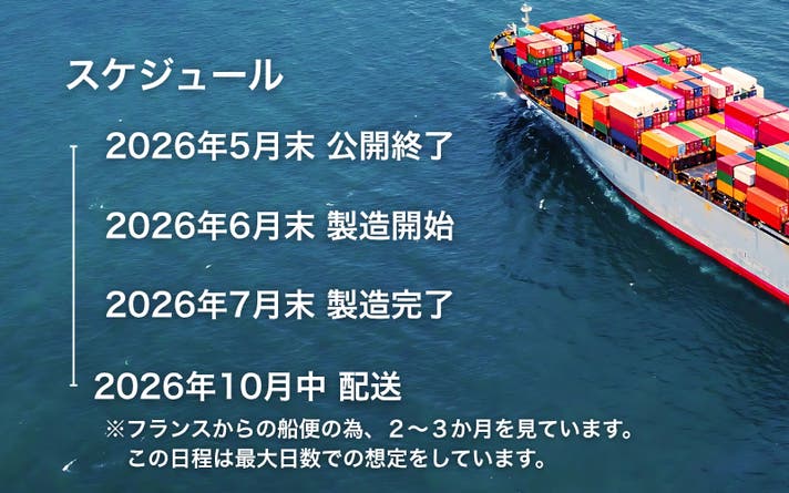 このプロジェクトはAll in型です。目標金額の達成に関わらず、プロジェクト終了日の2026年05月30日までに支払いを完了した時点で購入が成立します。