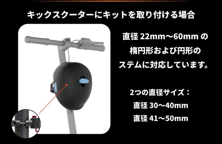 A. Klickfixマウント対応の電動キックボード(22〜31.8mm)にも装着可能です。