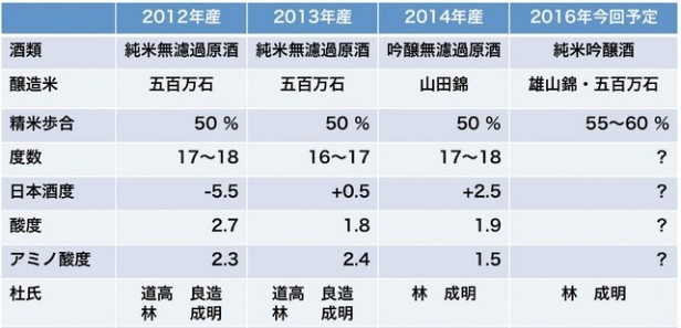 「とやま産まれの酵母」を使った酒づくりも、当初は思うように発酵が進まず困難を極めました。しかし、力強い酒造りで石川県能登の宗玄酒造を全国的に有名にし、全国新酒鑑評会で4回金賞を受賞した能登のベテラン杜氏・道高良造氏(当時80歳)の豊富な経験に裏打ちされた仕込みにより、2012年に奇跡的に最初の醸造に成功、最終的にはアルコール度数18度という清酒酵母に匹敵する度数を達成し、米の旨味を感じる味わい深いお酒となりました。