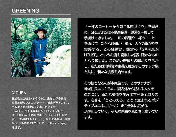 株式会社カヤック代表取締役 柳澤大輔と貸切でサウナに一緒に入り、語り合える券となります。日程は購入者と調整の上、決定いたします。平日夜帯での調整となります。