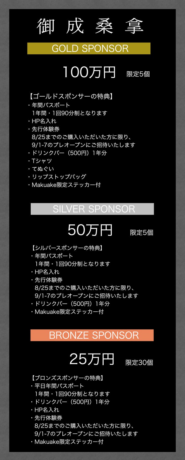 御成桑拿のシルバースポンサーになっていただけるリターンです。
