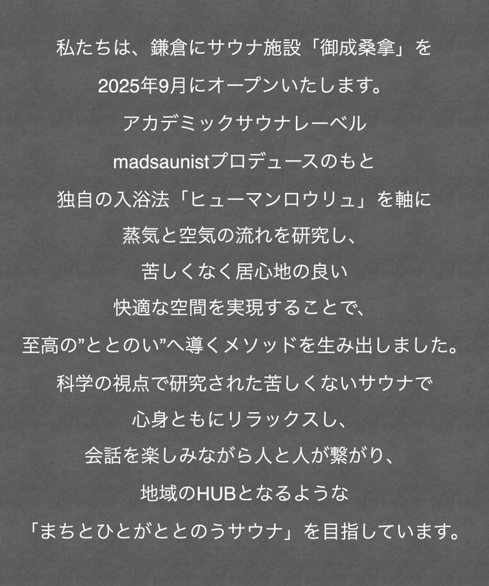 - 2025年9月上旬 開業予定!まちとひとが"ととのう"コミュニティサウナ。男女混浴(水着着用)