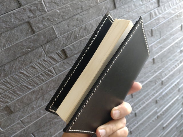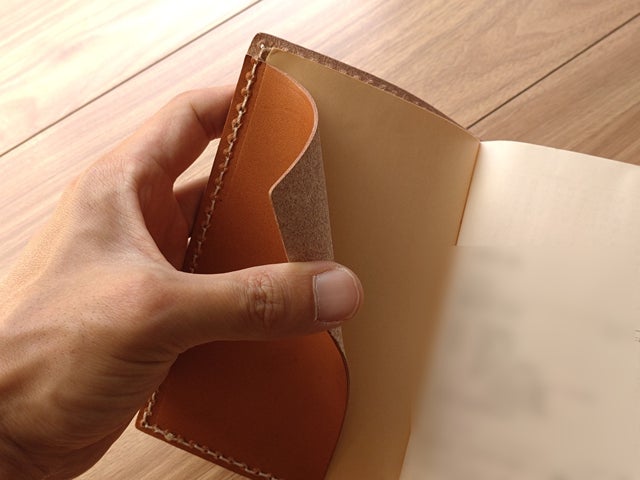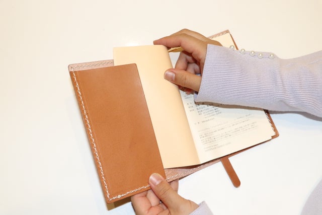 今回は、普通のブックカバーとは違う新しい挿入構造を採用しました。