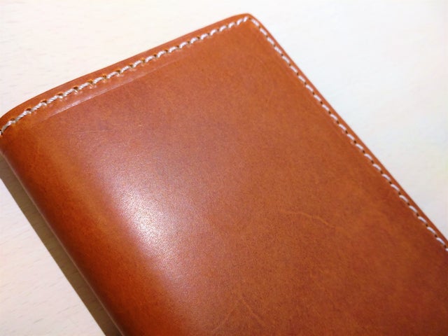 ヌメ革表面のきめを均一に整えることができ、浅い傷も目立たなくなり革のツヤが出始めます。