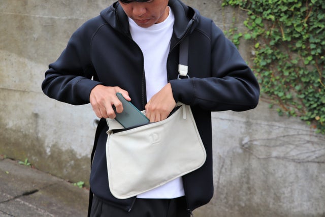 サコッシュは形がシンプルで目立たず、身に着けていておしゃれな印象に!