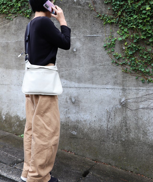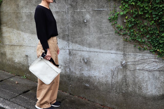 ムダが省かれたシンプルさ故に、体に上手くフィットし、近所のお散歩や、旅行先の散策に適したバッグです。