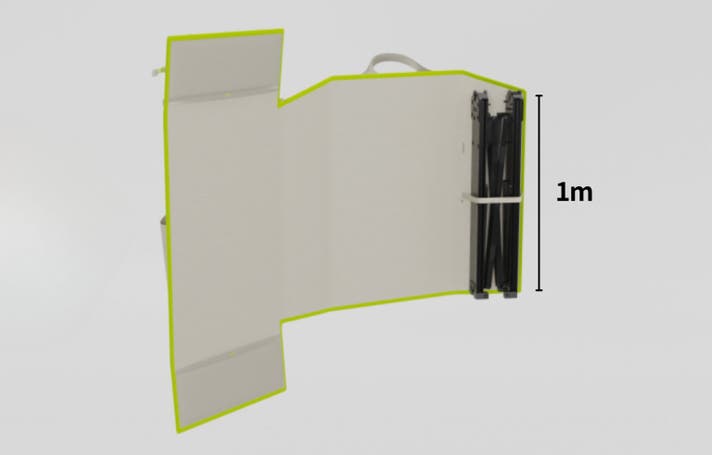 バッグを展開すると、内部には長さ約1mのテーブル用のフレームが収納されています。