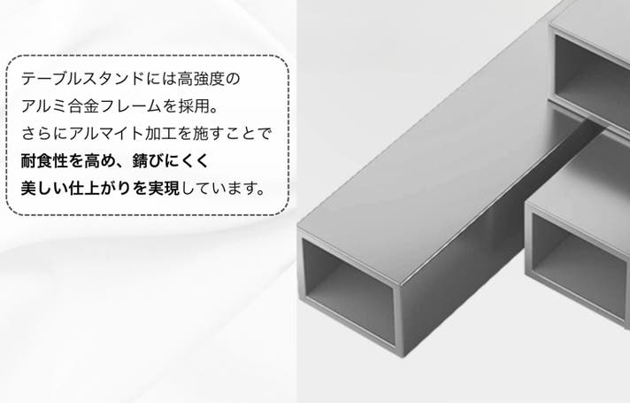 重量わずか900gのスタンド部分は、高強度アルミ合金で設計。