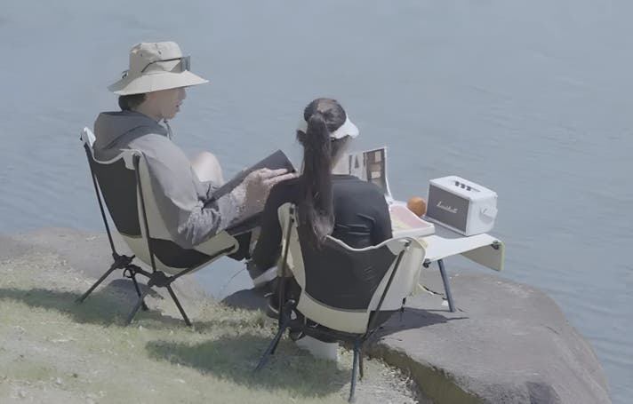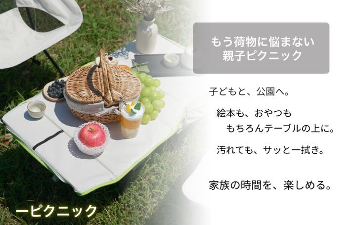 休憩したいときは、その場で広げて即テーブル。