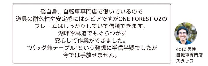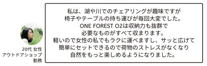 ONE FOREST O2 は、日常でもアウトドアでも大活躍。