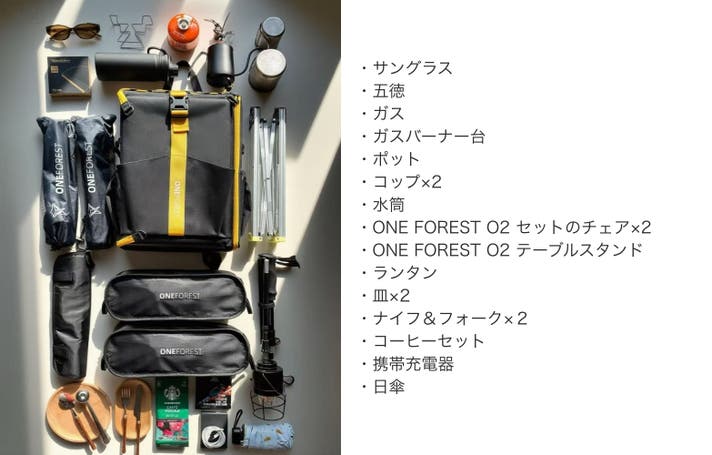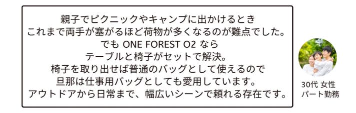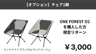 ※本リターンは「ONE FOREST O2 バックパック(テーブル+チェア1脚込み)」のリターンです。
