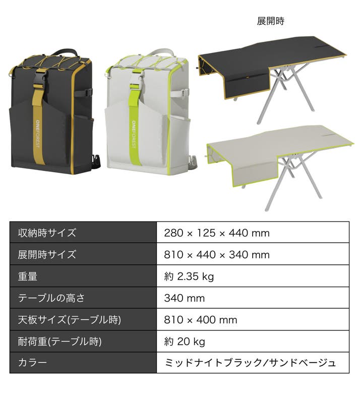 【早割】ONE FOREST O2 バックパック(テーブル機能付き)