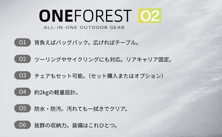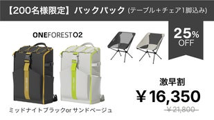 ※本リターンは「ONE FOREST O2 バックパック(テーブル付き)」単体のリターンです。