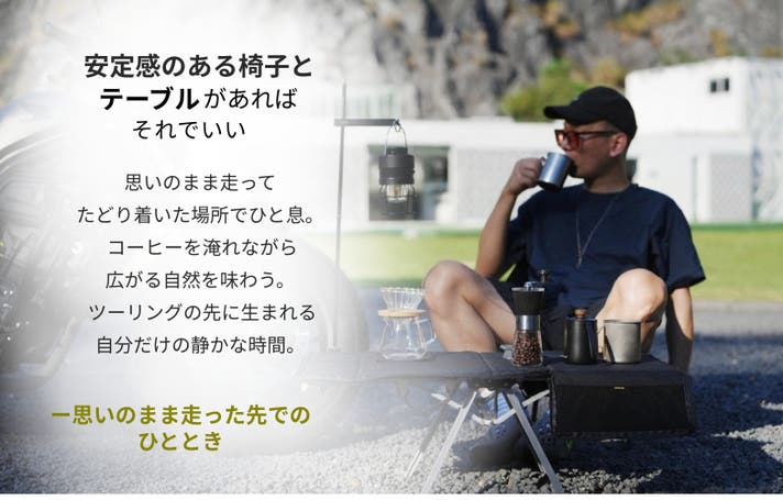 ツーリングやサイクリングの先で、自分だけのくつろぎの時間を演出できます。