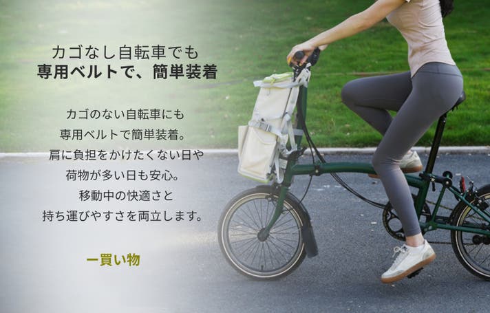 軽量ボディだから、リアキャリアにストラップで簡単に固定できます。