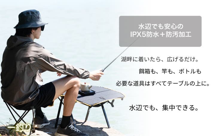 テーブルになるバッグ部分もチェアも、どちらも生地はIPX5仕様なので、突然の雨も飲み物をこぼしてしまっても汚れにくい設計になっております。