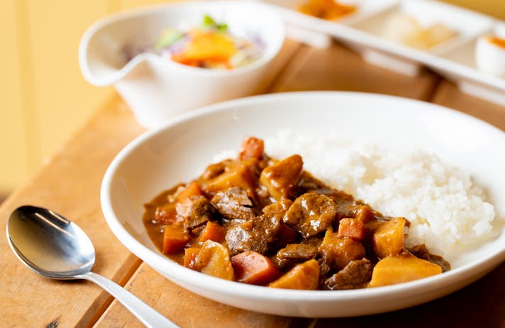 鹿カレー:じっくり煮込んだ優しい辛さで子どもから大人まで楽しめる定番の一皿。