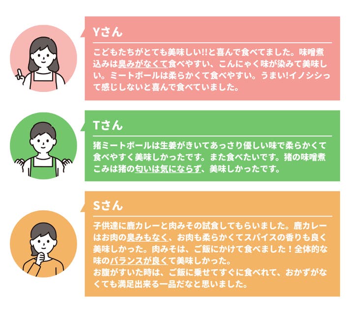 - 食の新定番1日1ジビエ。鹿と猪の力強い旨みで、毎日の食卓を美味しく、豊かに。