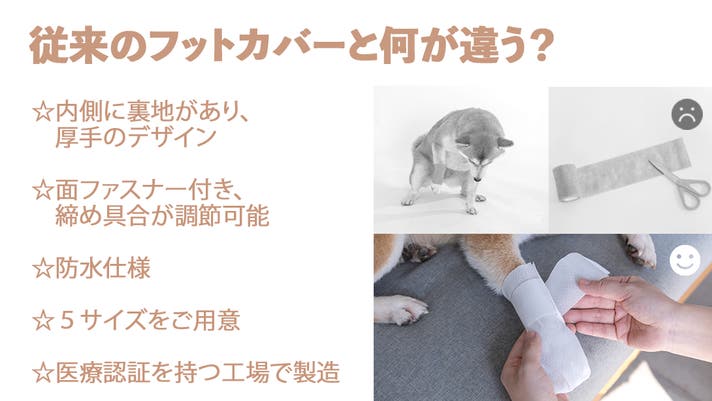 ペットは大切な家族の一員であり、散歩中の汚れを防ぐために「ペット用フットカバー」の需要が高まり続けています。日本ではまだ種類や選択肢が少ないため、海外の実用的で高品質な商品を紹介したいと考えました。散歩中に地面の熱や雨、雪などからペットの足を守るだけでなく、室内の汚れ防止にも役立つ商品として、より快適な生活をサポートしたいという思いがあります。