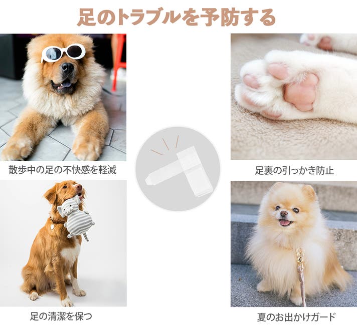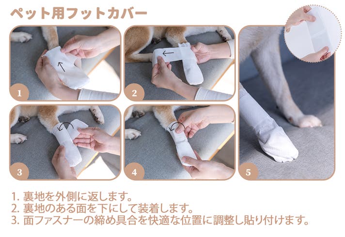 非粘着性なので毛や皮膚を引っ張ったりすることがありません。快適で手間もストレスもかからないペット専用フットカバーとなっています。