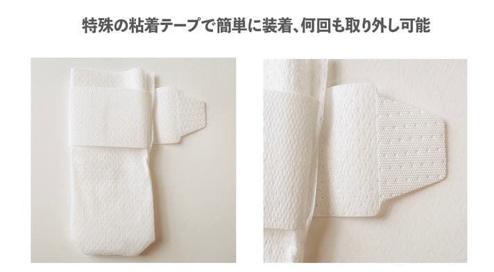- サイズ調整できる粘着性ある紐付き、簡単に着脱できる