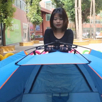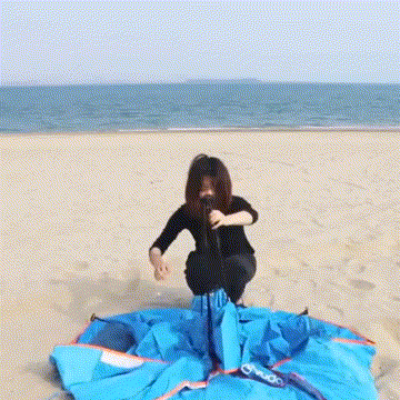 骨組みと生地張りが一体化していて、テントを広げてロープを引くだけで設営完了。