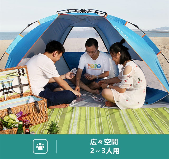 ワンタッチレジャーテントは大人2〜3名でご利用いただける広さで設計しています。