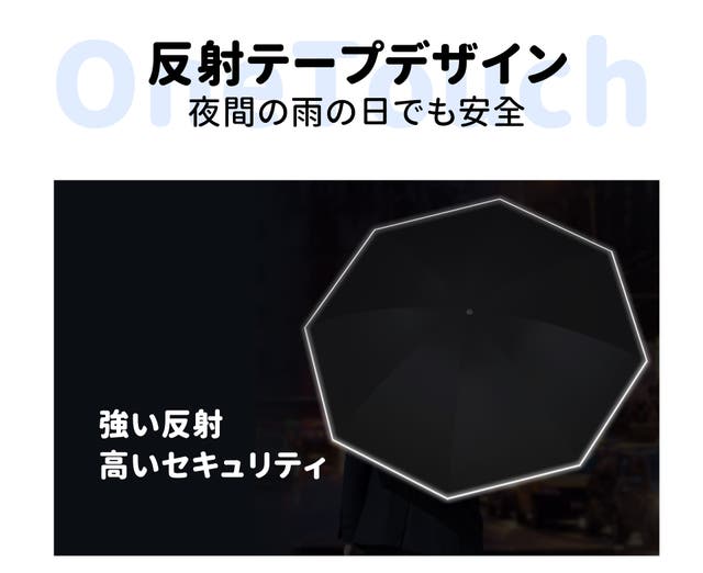 OneTouchの傘の縁には反射警告テープが設置されています。夜間の雨の日に車のライトが当たると、光を反射し、周囲の車両にあなたの位置を知らせることができ、夜間の危険を減らす効果があります。