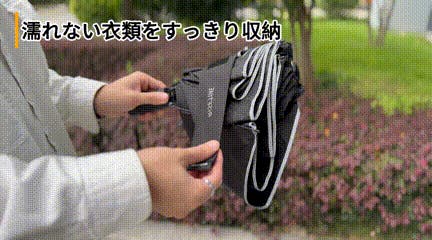 また、持ち運びや収納時も、衣服や手を濡らす心配がありません。傘を持ち歩いていても、衣服を濡らさず、折りたたむ際も手が濡れることはありません。