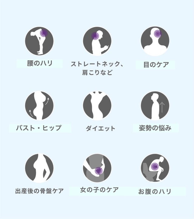 装着し、腰を左右に動かす簡単なエクササイズをするだけで骨盤をサポート。1回たった3分を、1日に2回。朝、出勤する前の準備の時間に、歯磨きの時間に、夜寝る前のゴロゴロ時間になど、ほんの隙間時間で大丈夫。“身体の全てをつかさどる”骨盤が正しい位置にあれば、悩みがスッキリされる事で、何にも負けない【強いカラダ】が実現します。腰のハリや背中のハリなどがひどい日はもちろん、1日元気でいたい日の準備体操、整理体操としても最適。エクササイズを終えた後の体の軽さを感じてみてください。