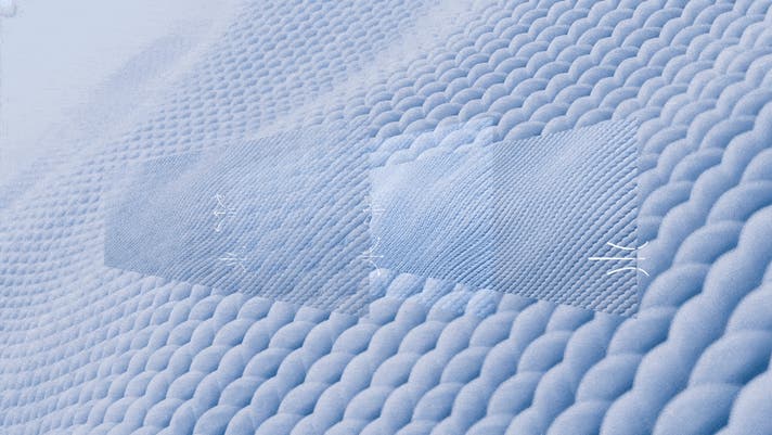 ナイロン×ポリウレタンの生地が身体にやさしく寄り添うようにフィットし、快適な着け心地を生み出します。内側にはぬくもりが均一に広がりやすい面構造を採用。長時間の着用でも自然な心地よさを感じやすい設計です。