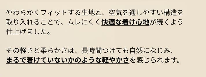 - 360°加圧でズレにくく動いてもフィット感キープ。面発熱の心地よさで毎日の相棒にしたくなる一枚
