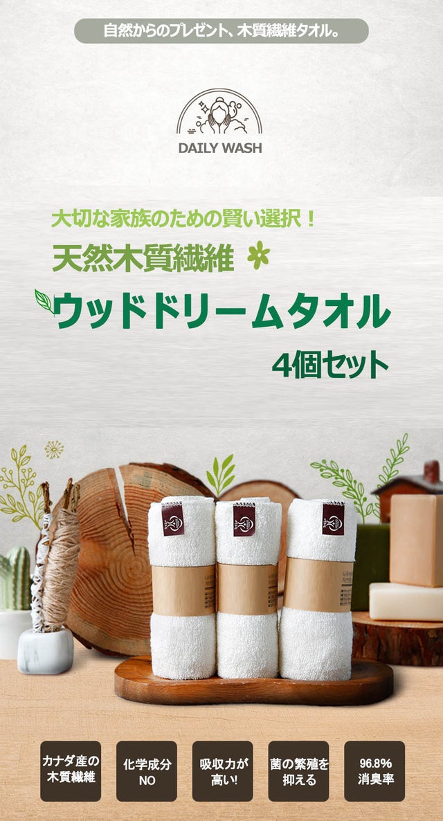 「超早割」ウッドドリームタオル 4個 - 199個限定